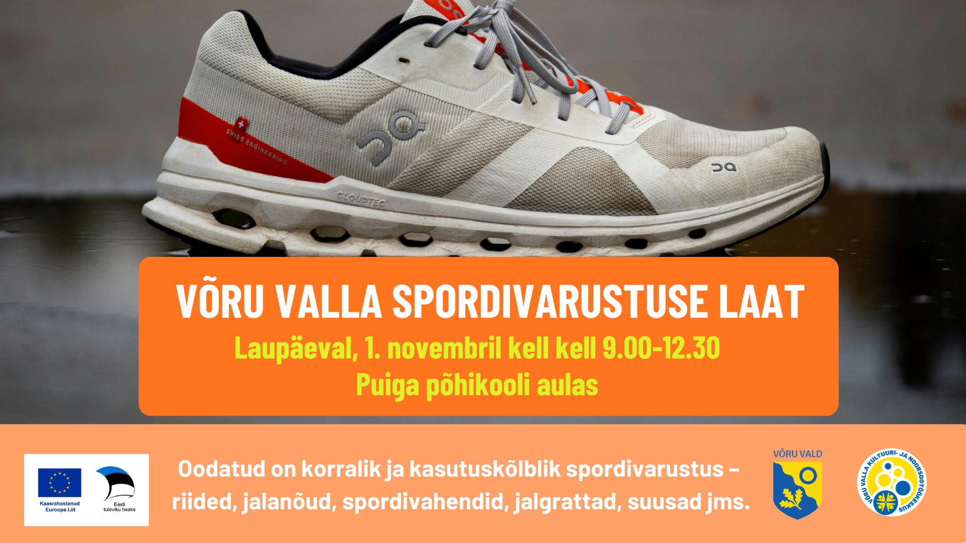Oodatud on korralik ja kasutuskõlblik spordivarustus – riided, jalanõud, spordivahendid, jalgrattad, suusad jms.